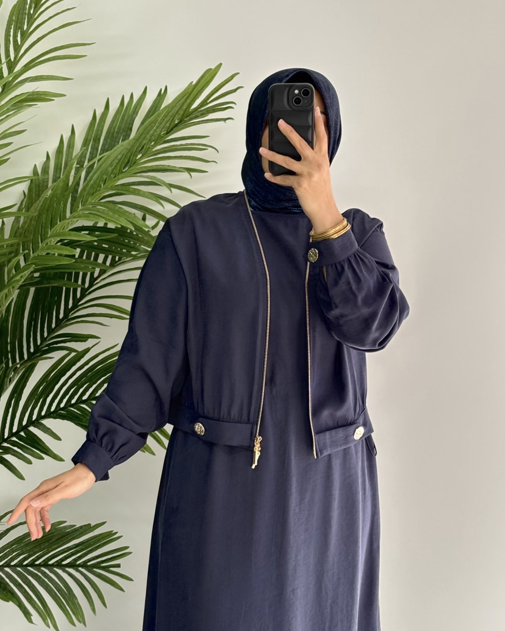 Ceketli Kupra Elbise Lacivert